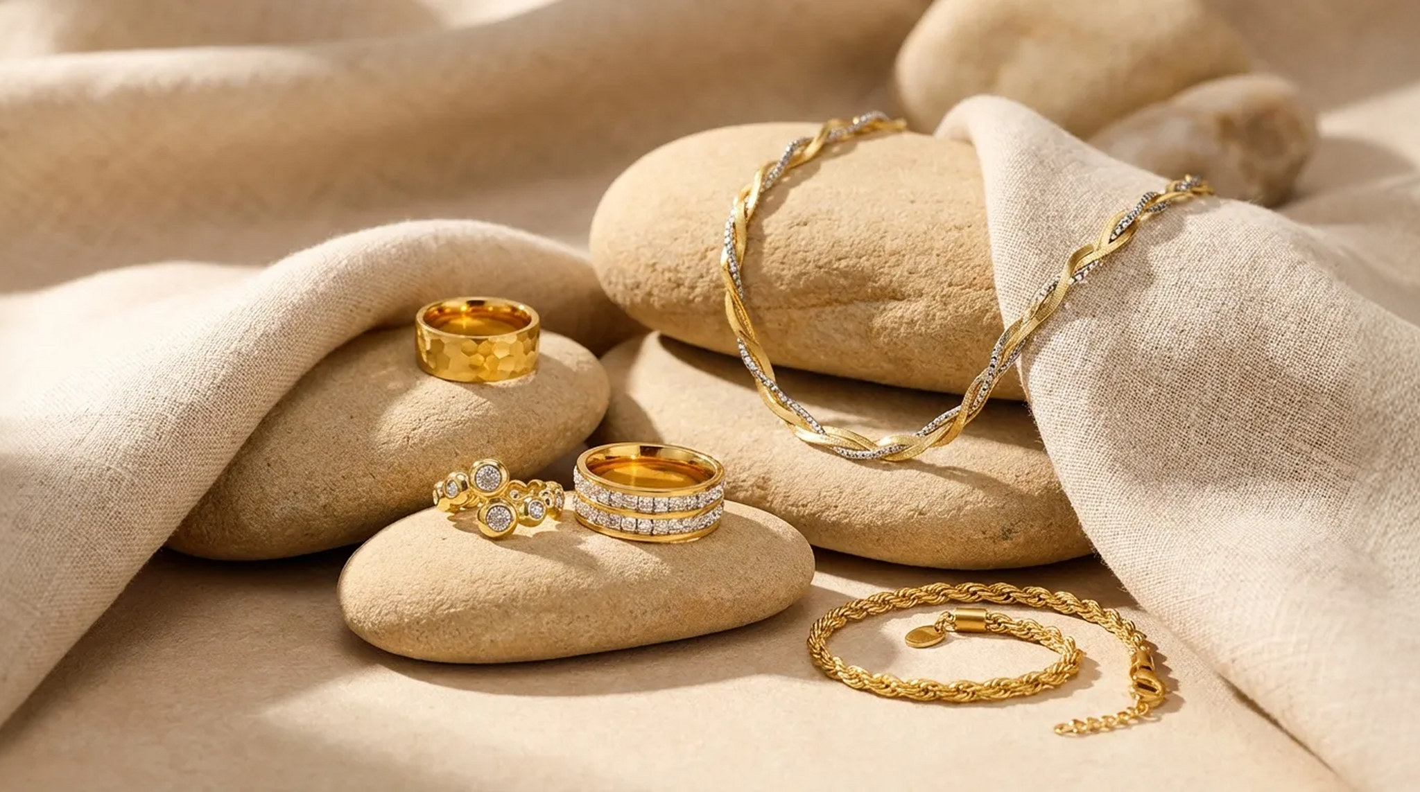 Gold-filled jewelry is made by bonding a thick layer of solid gold to a base metal using heat and pressure. It looks like solid gold, lasts for years, and won’t tarnish or irritate the skin.