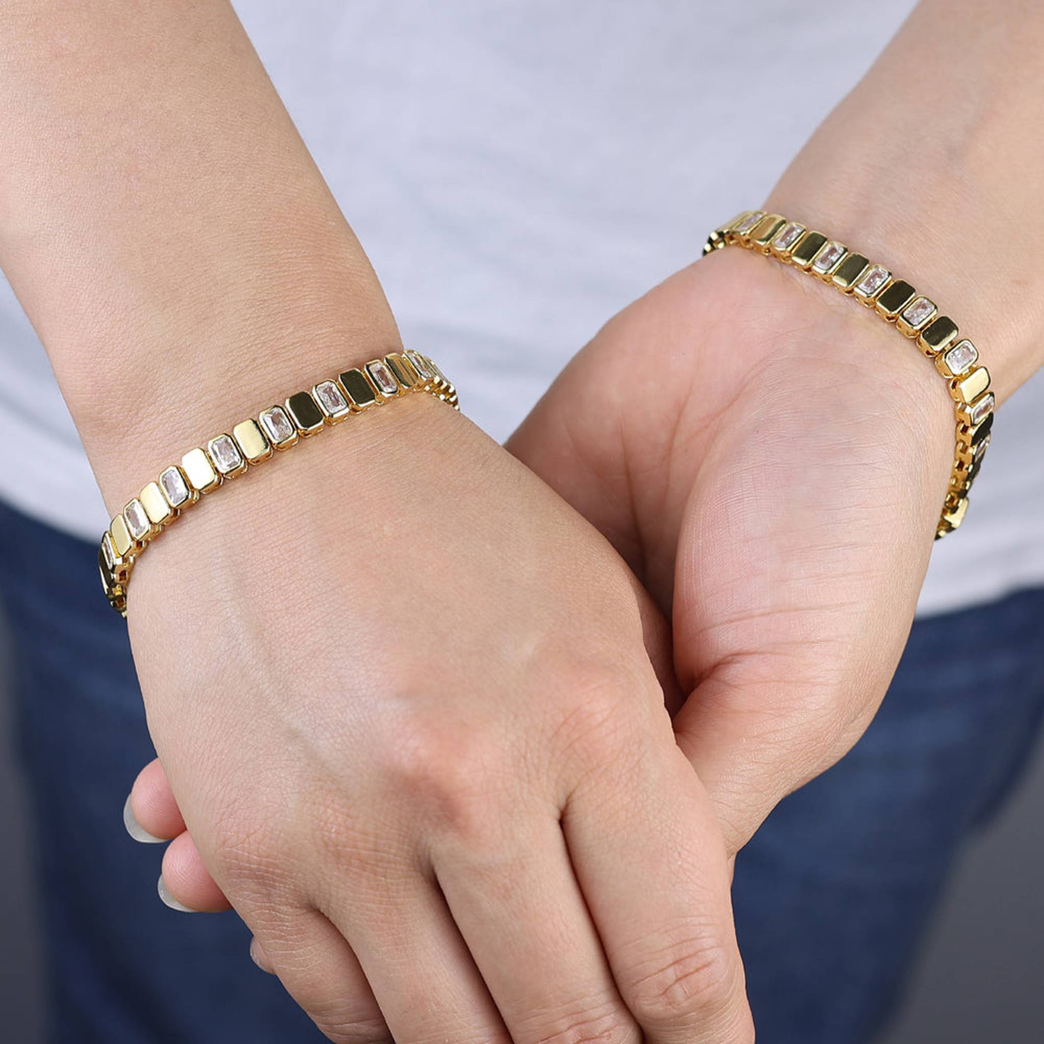 Whether you're layering it with your favorite stack or letting it shine solo, this bracelet brings just the right amount of sparkle. Thoughtfully designed to be hypoallergenic and comfortable, it's your go-to piece for luxury without limits.