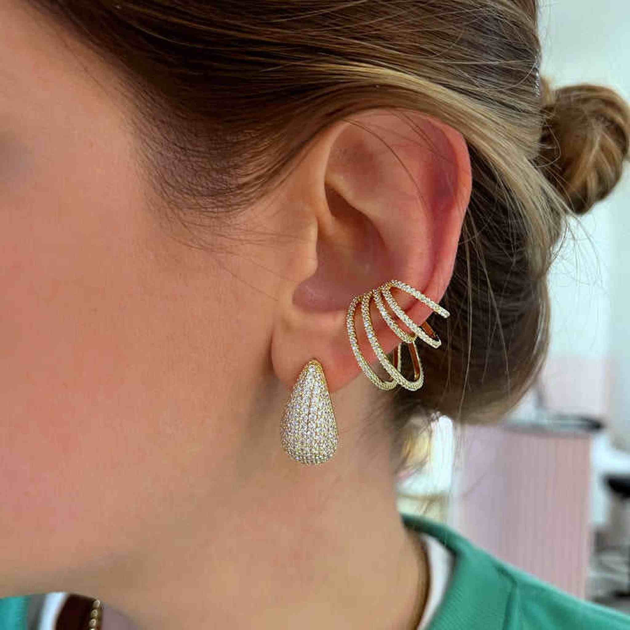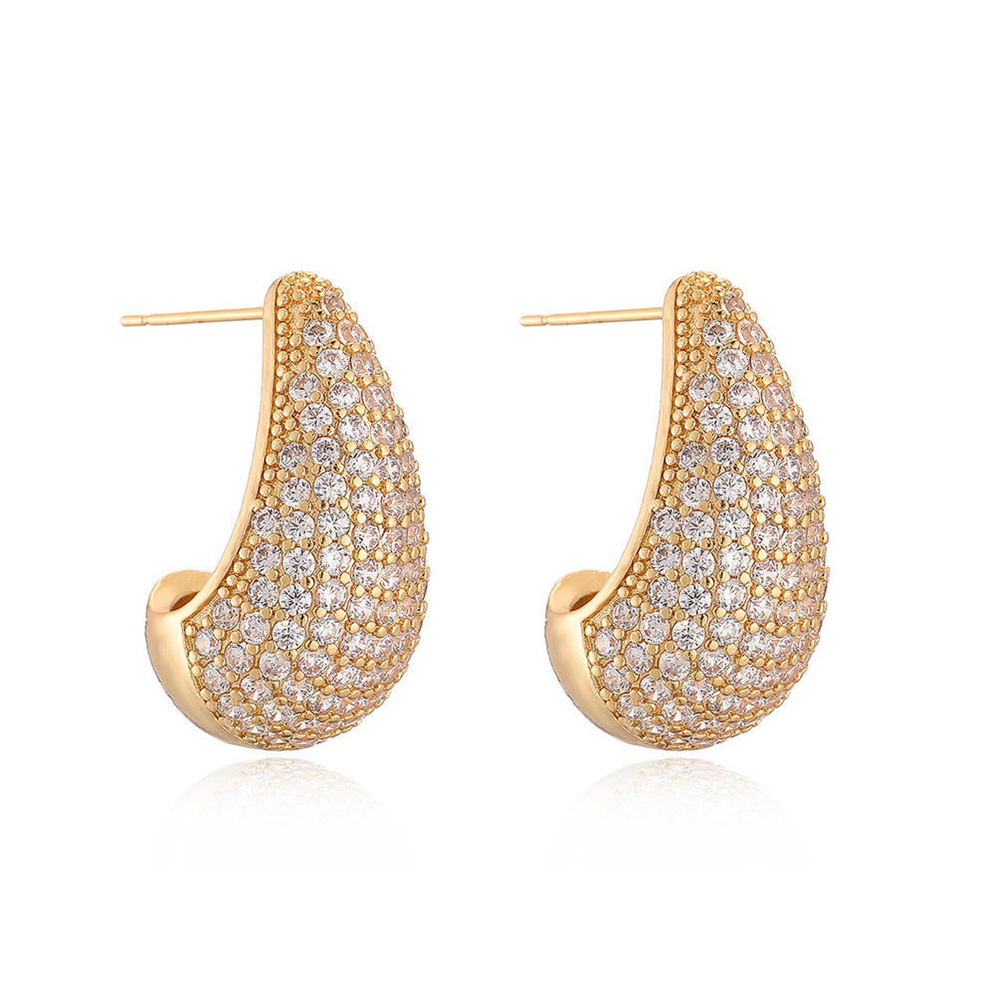 Enhance your outfit with these stunning Pave Teardrop Earrings. These earrings have a sleek design and sparkling pave details and add a touch of elegance to any look. Perfect for a night out or special occasion, these earrings are a must-have for every jewelry collection.