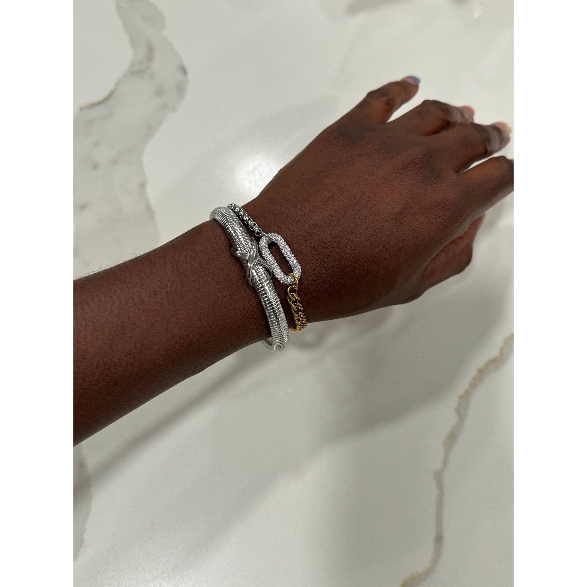 Silver Pave Mixed Link and Knot Bracelet Stack