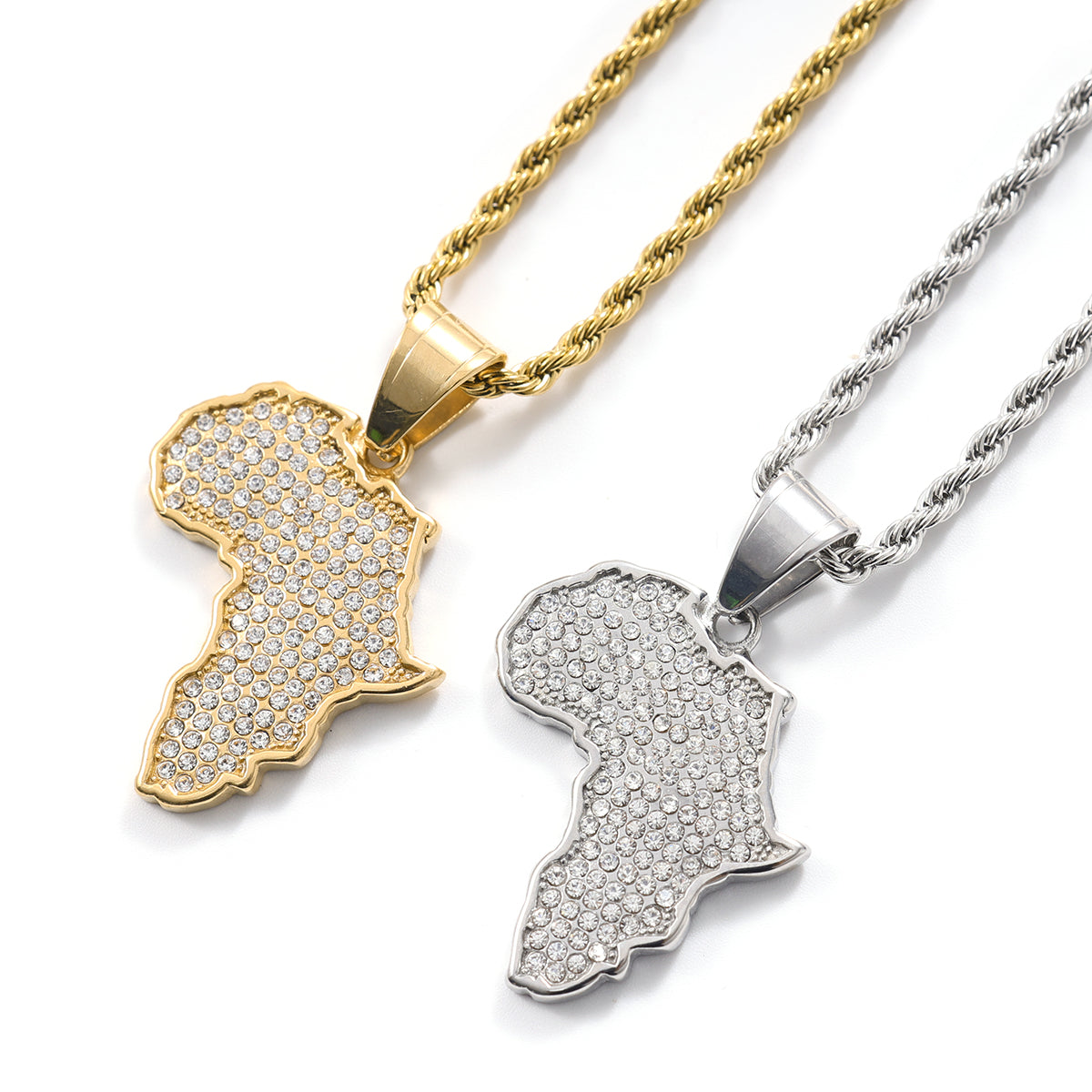 White Gold Africa Pendant and Chain