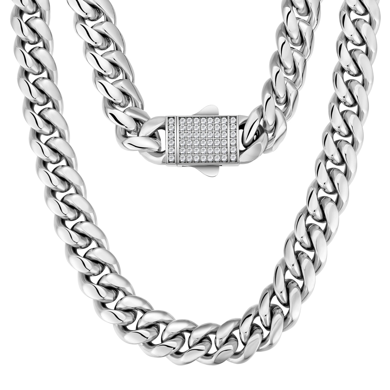White Gold 12mm Miami Cuban Link Diamond Clasp Chain