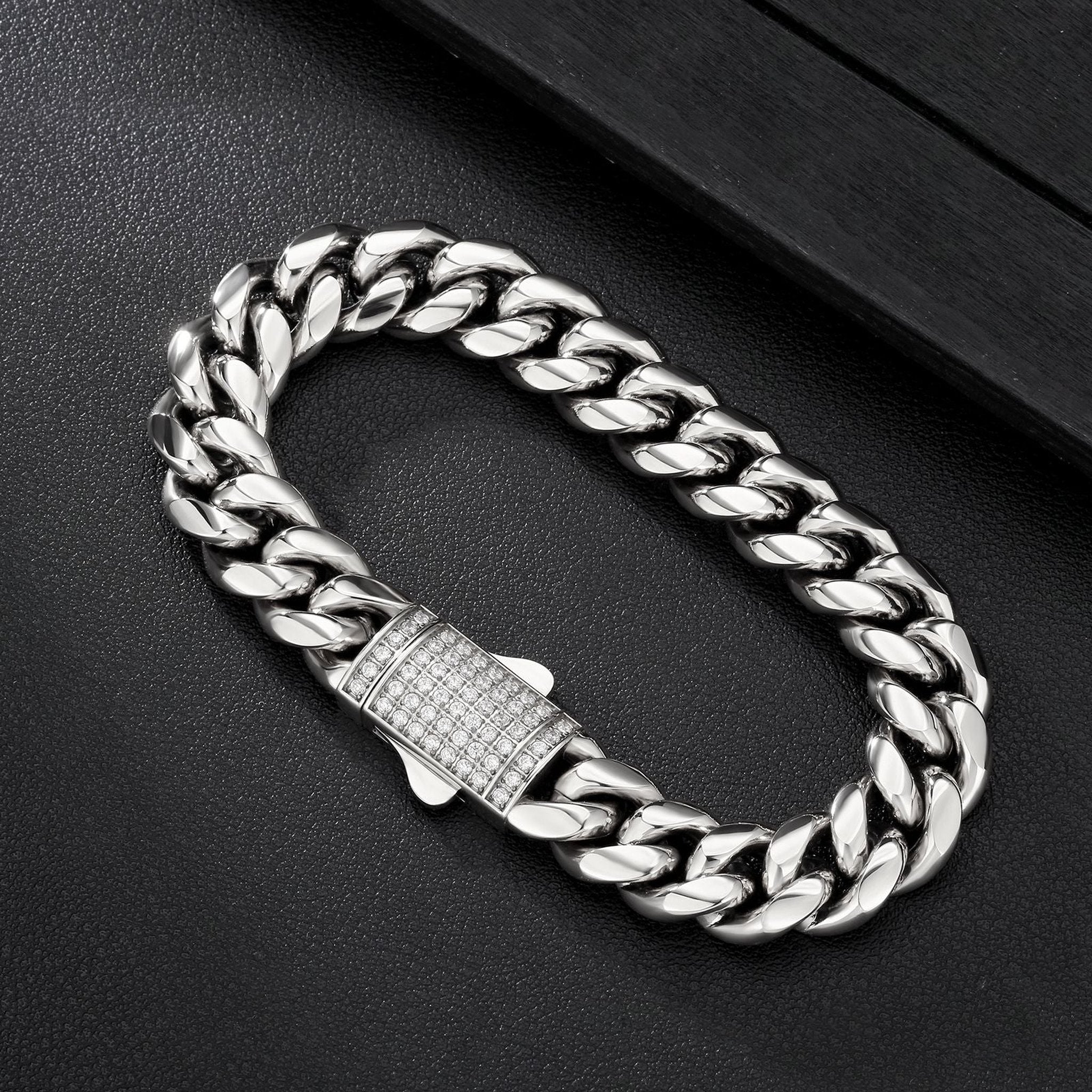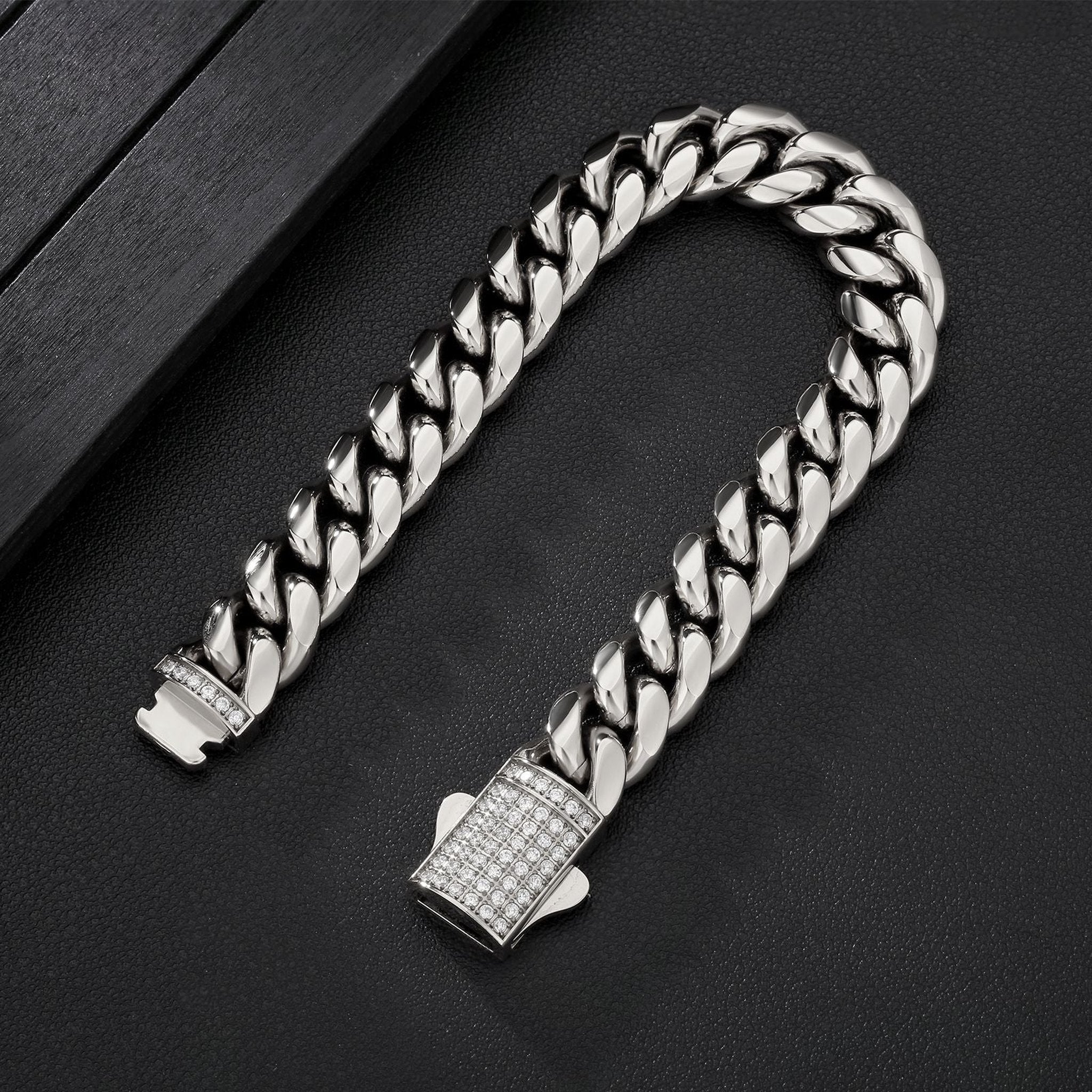 White Gold 12mm Miami Cuban Link Diamond Clasp Bracelet