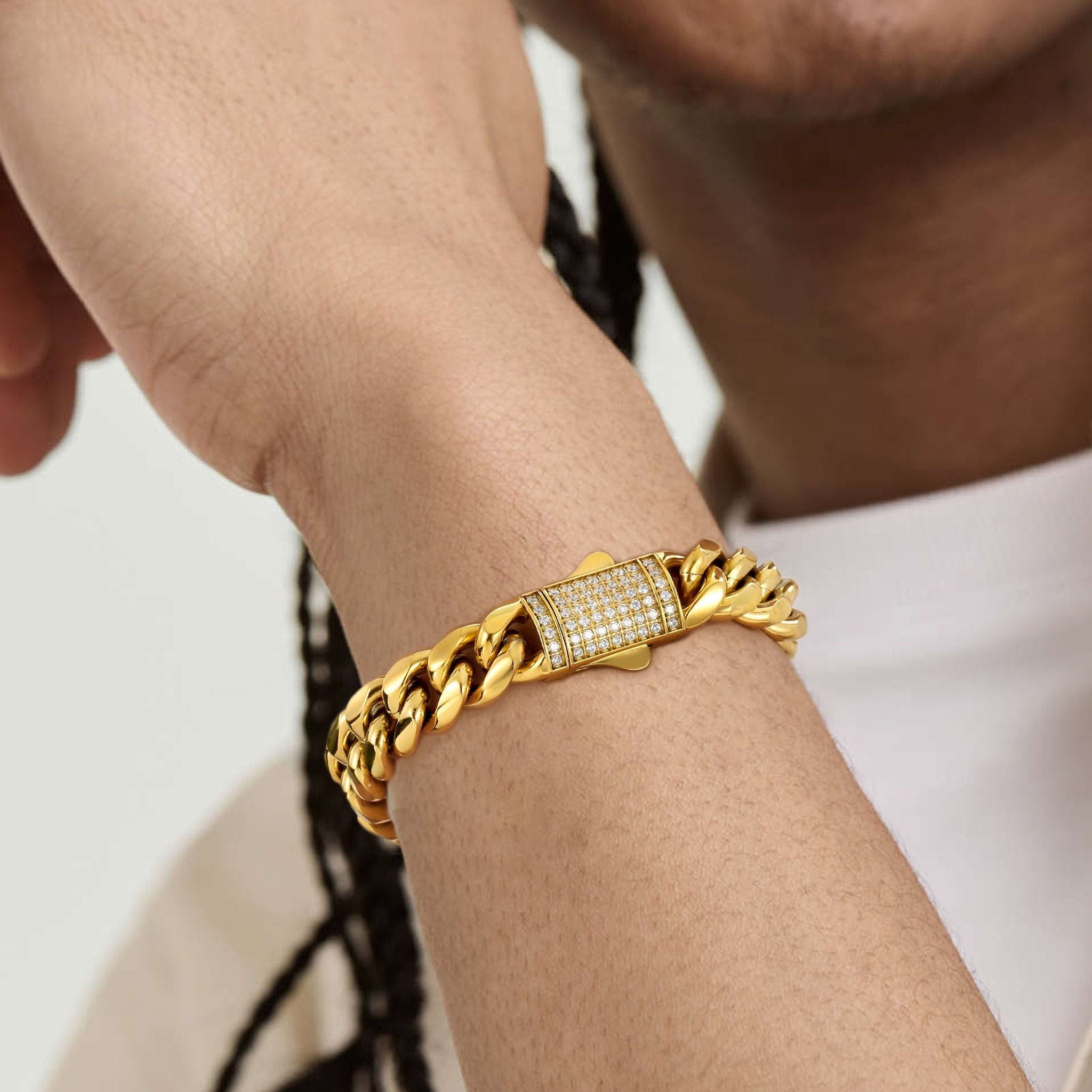 Gold 12mm Miami Cuban Link Diamond Clasp Bracelet