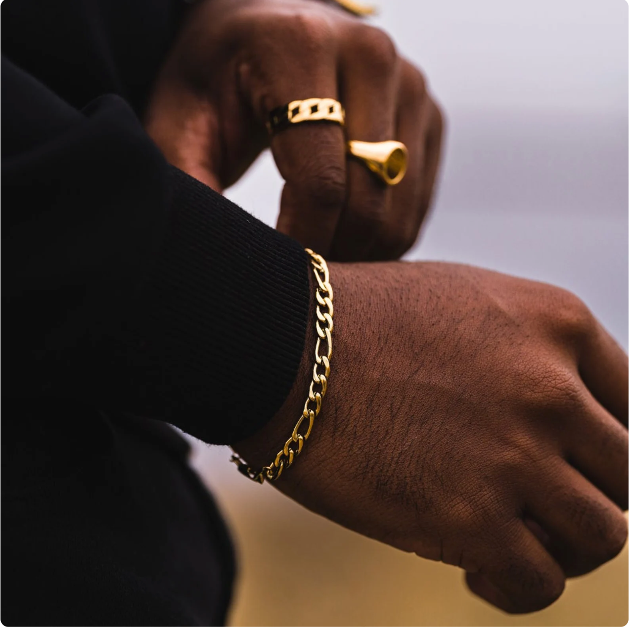 Our 5mm Gold Figaro Bracelet is a timeless piece that complements any look—made for men, women, and anyone who appreciates effortless style. Featuring the iconic Figaro link pattern of alternating short and long links, this bracelet strikes the perfect balance between bold and refined.