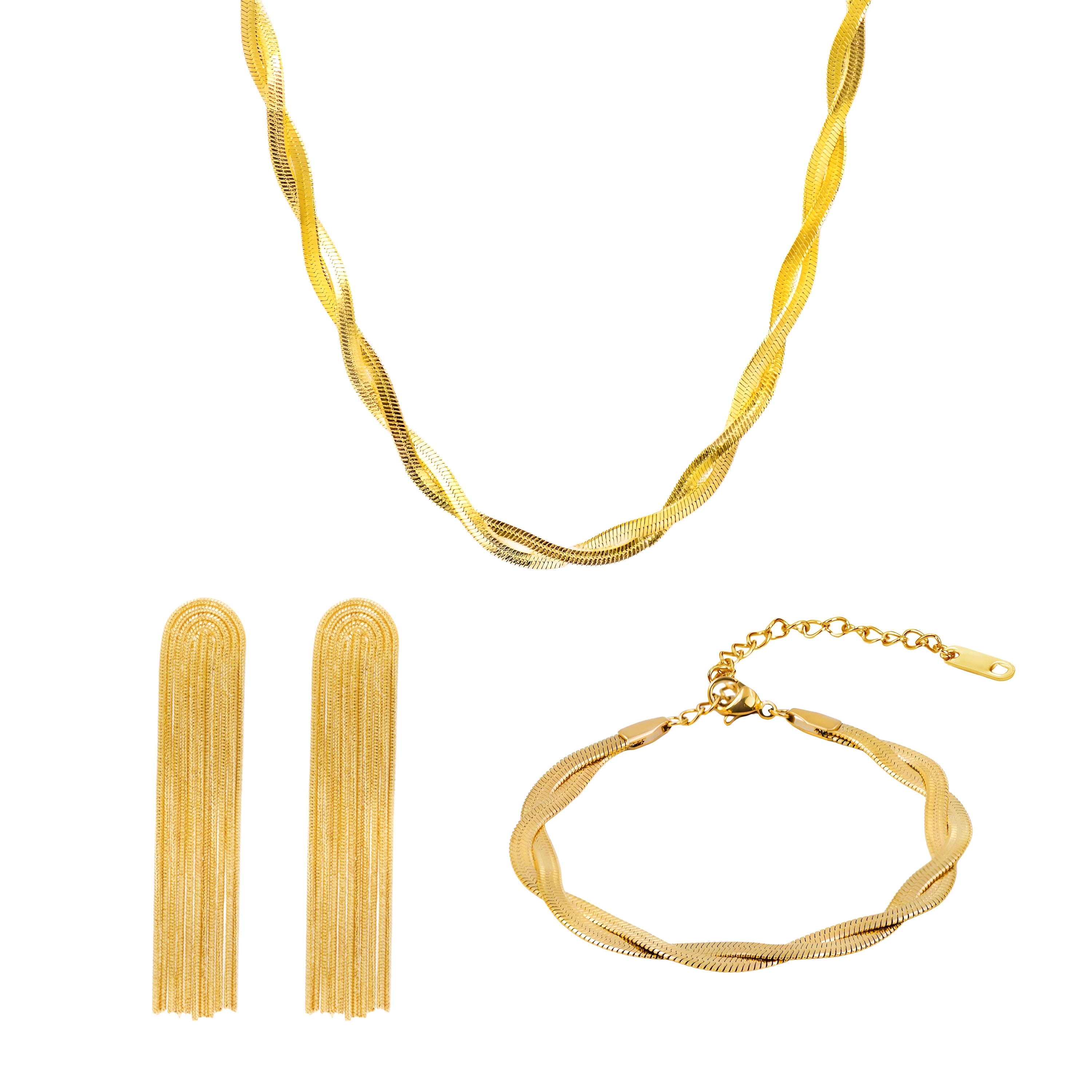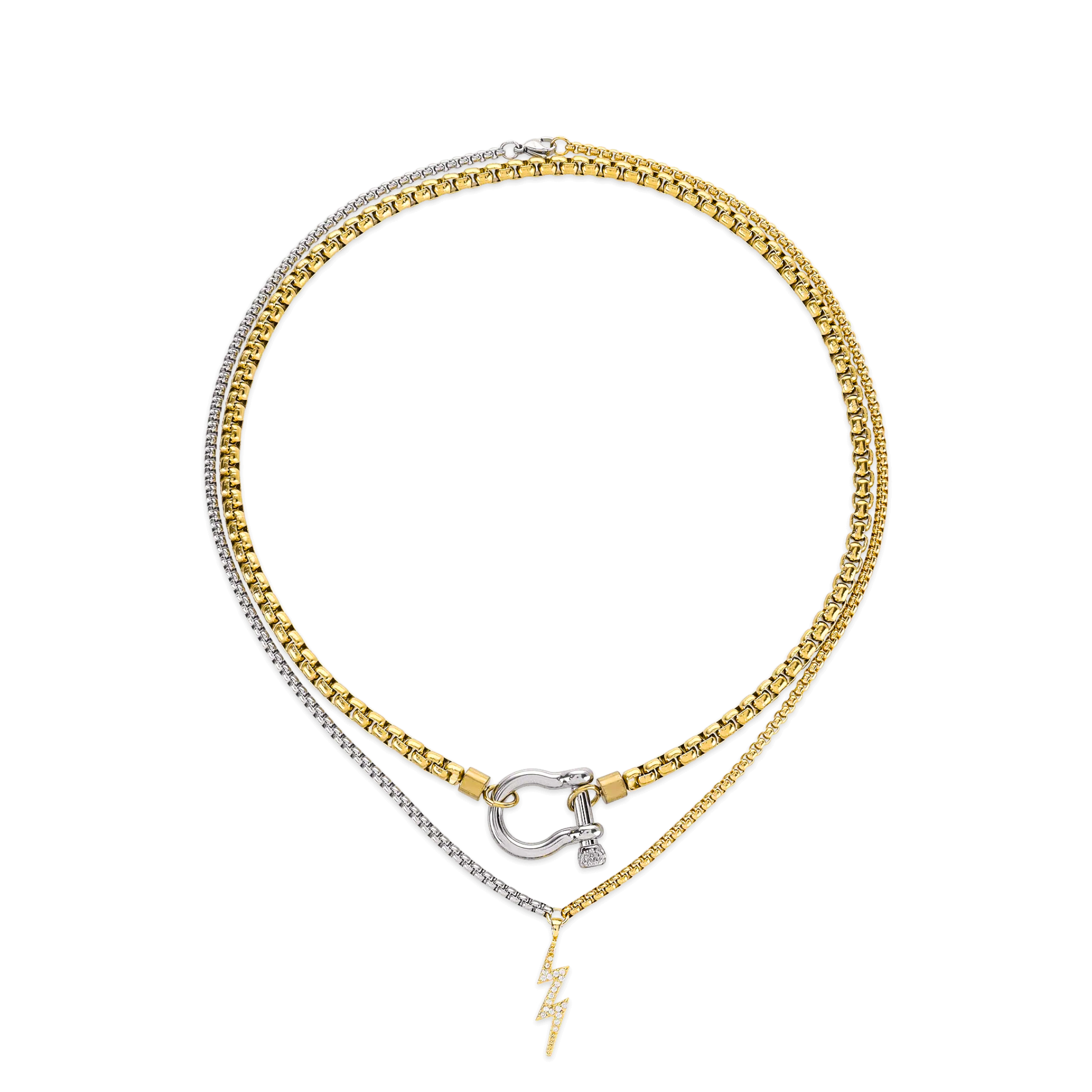 Gold Horseshoe Layered with Lightening Bolt Necklaces Set