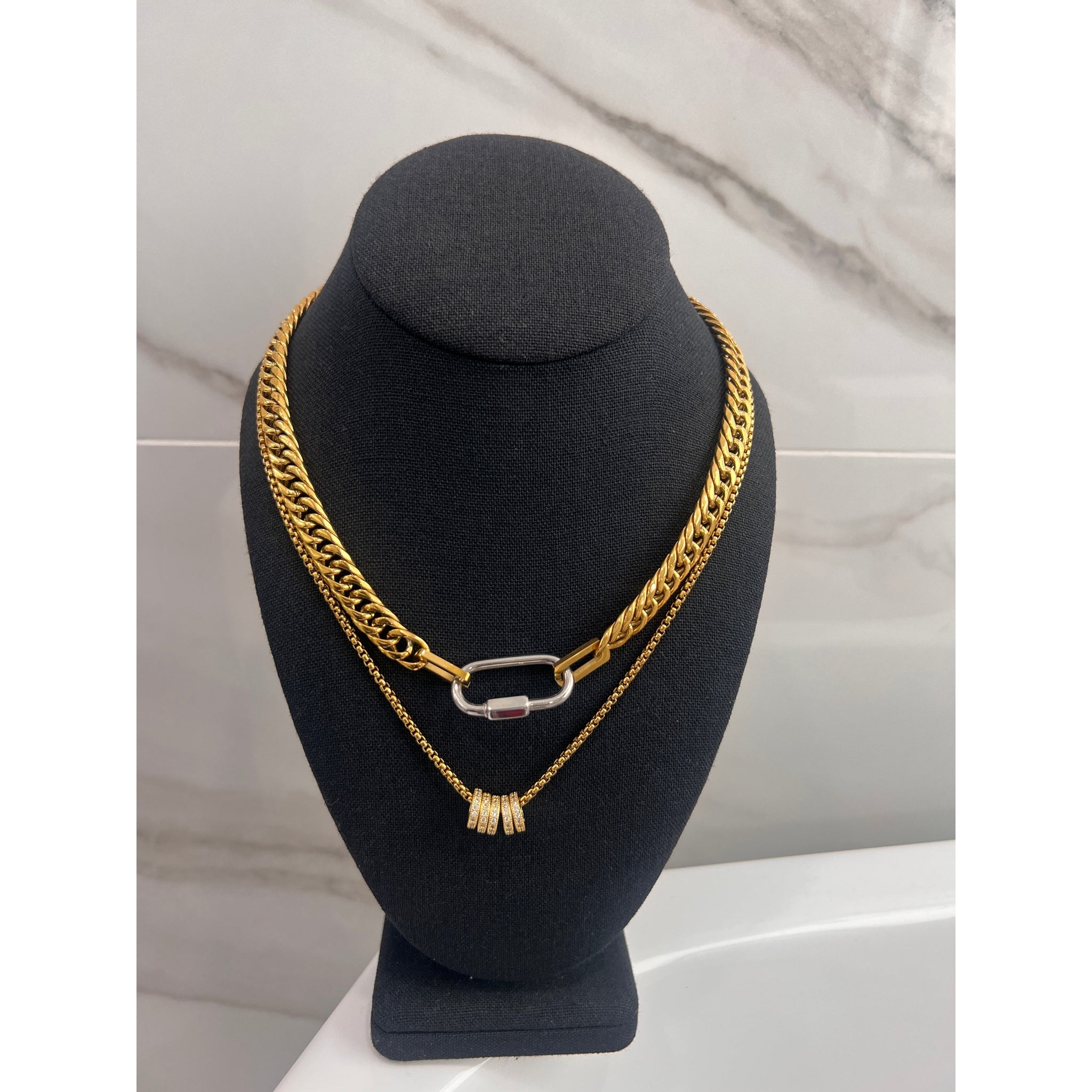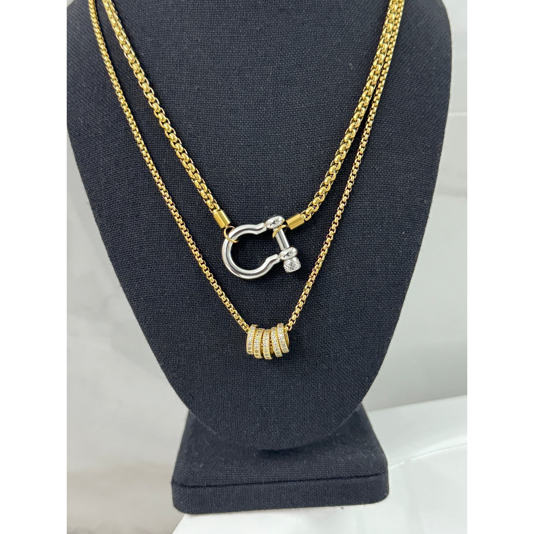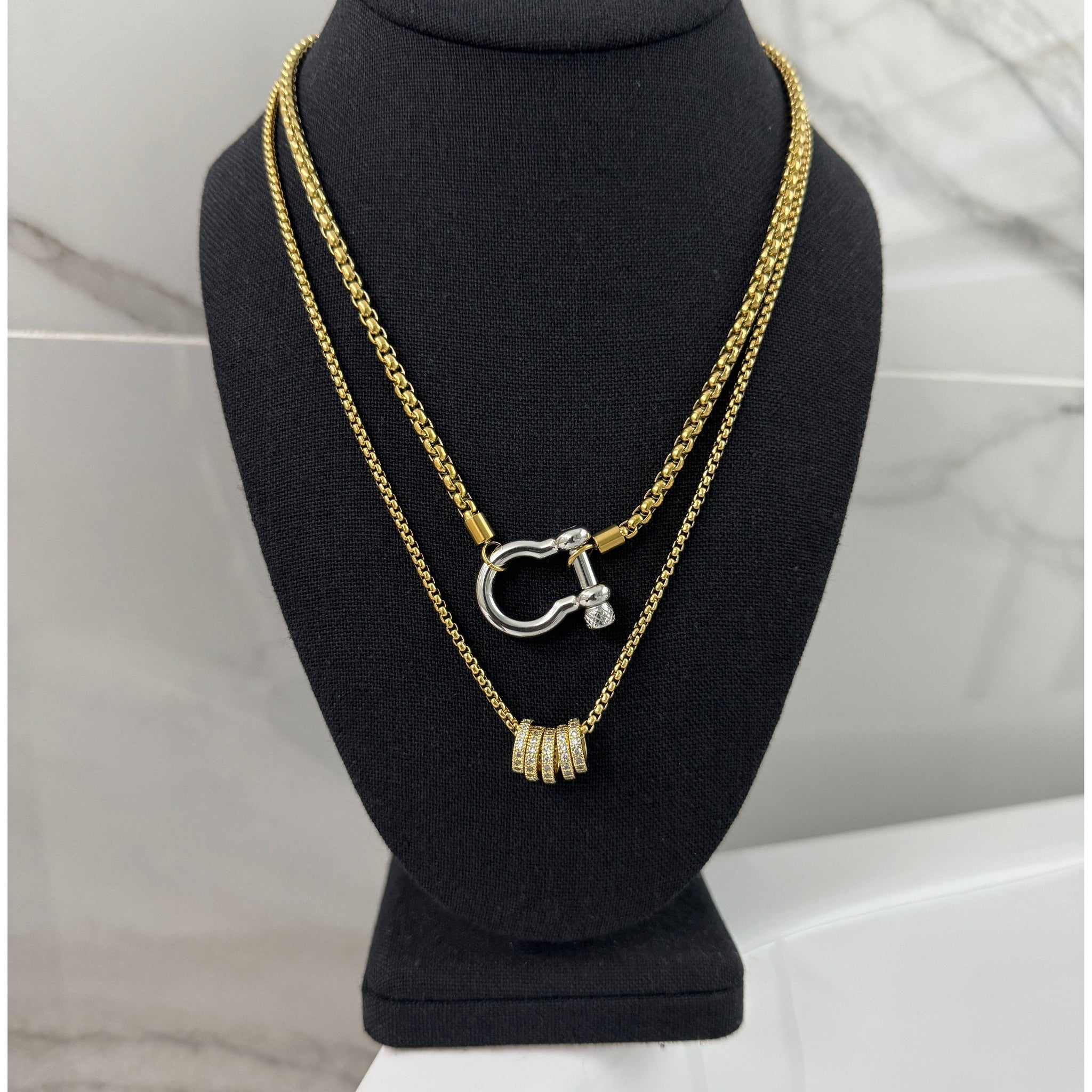 Gold Horseshoe and Ring Pendant Necklace Stack