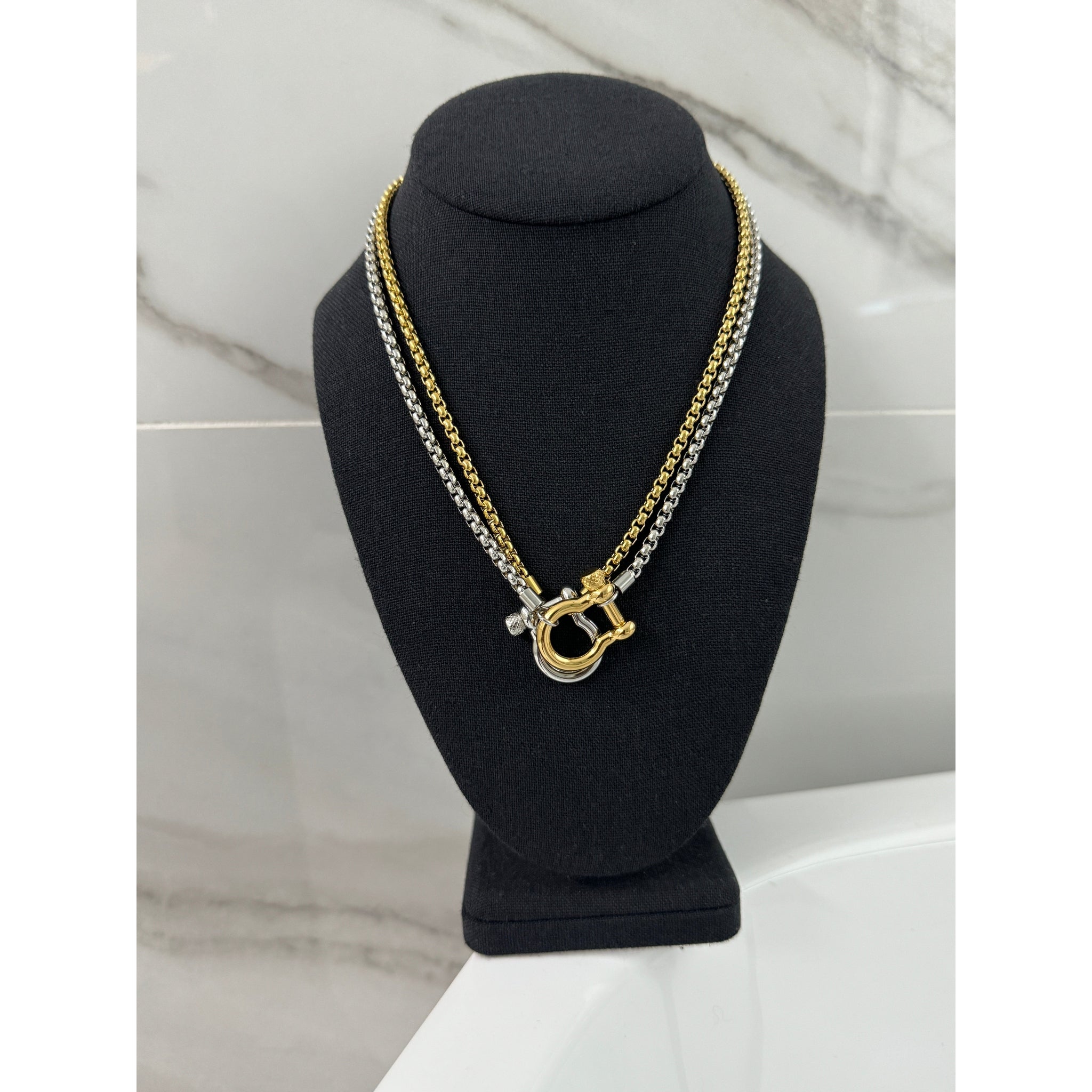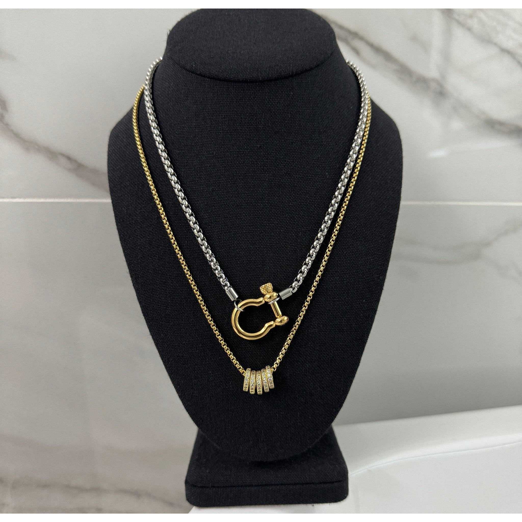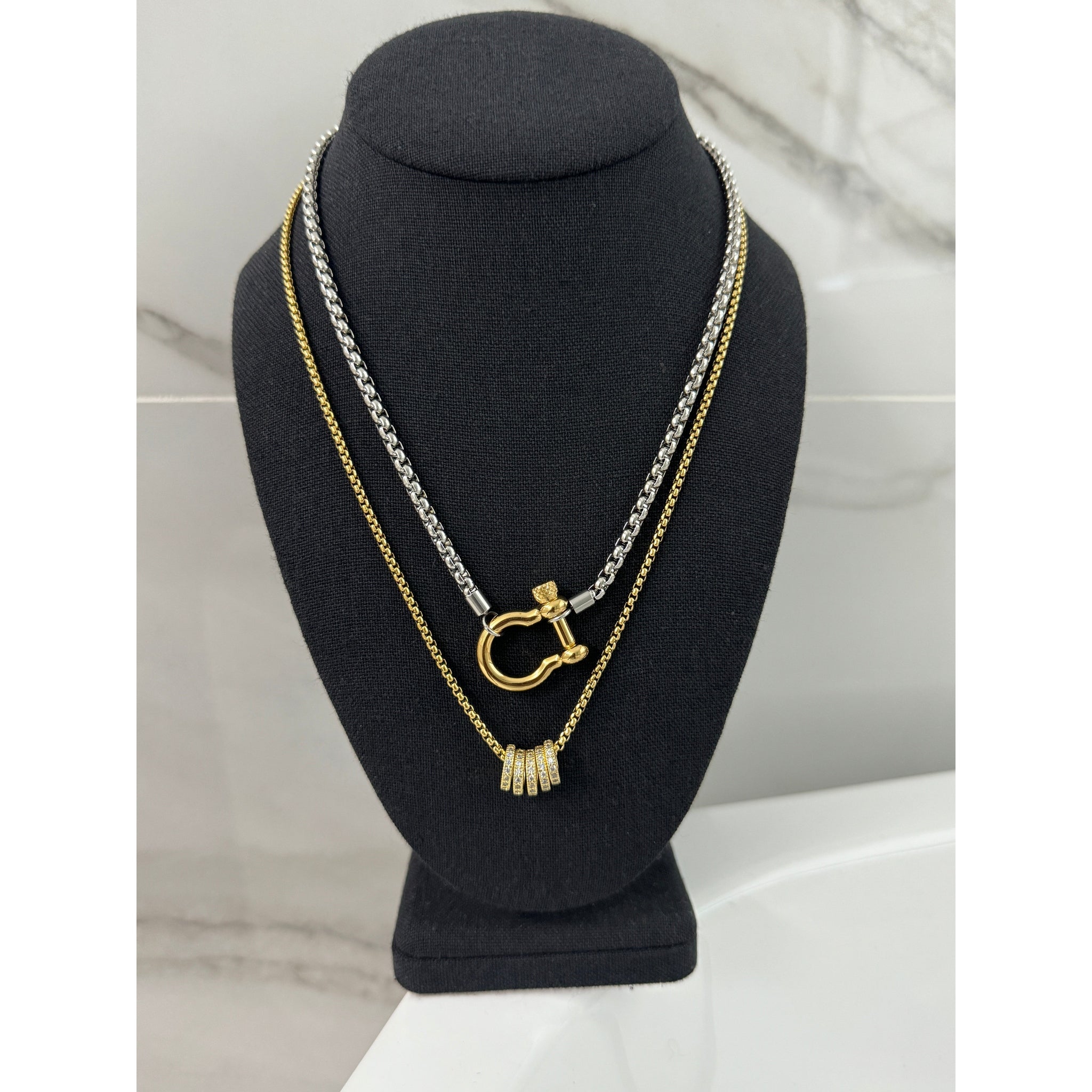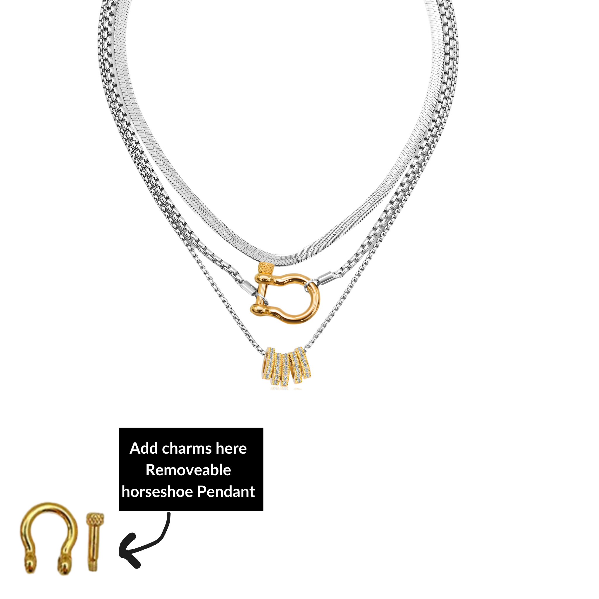 Silver Horseshoe and Ring Pendant Necklace Stack