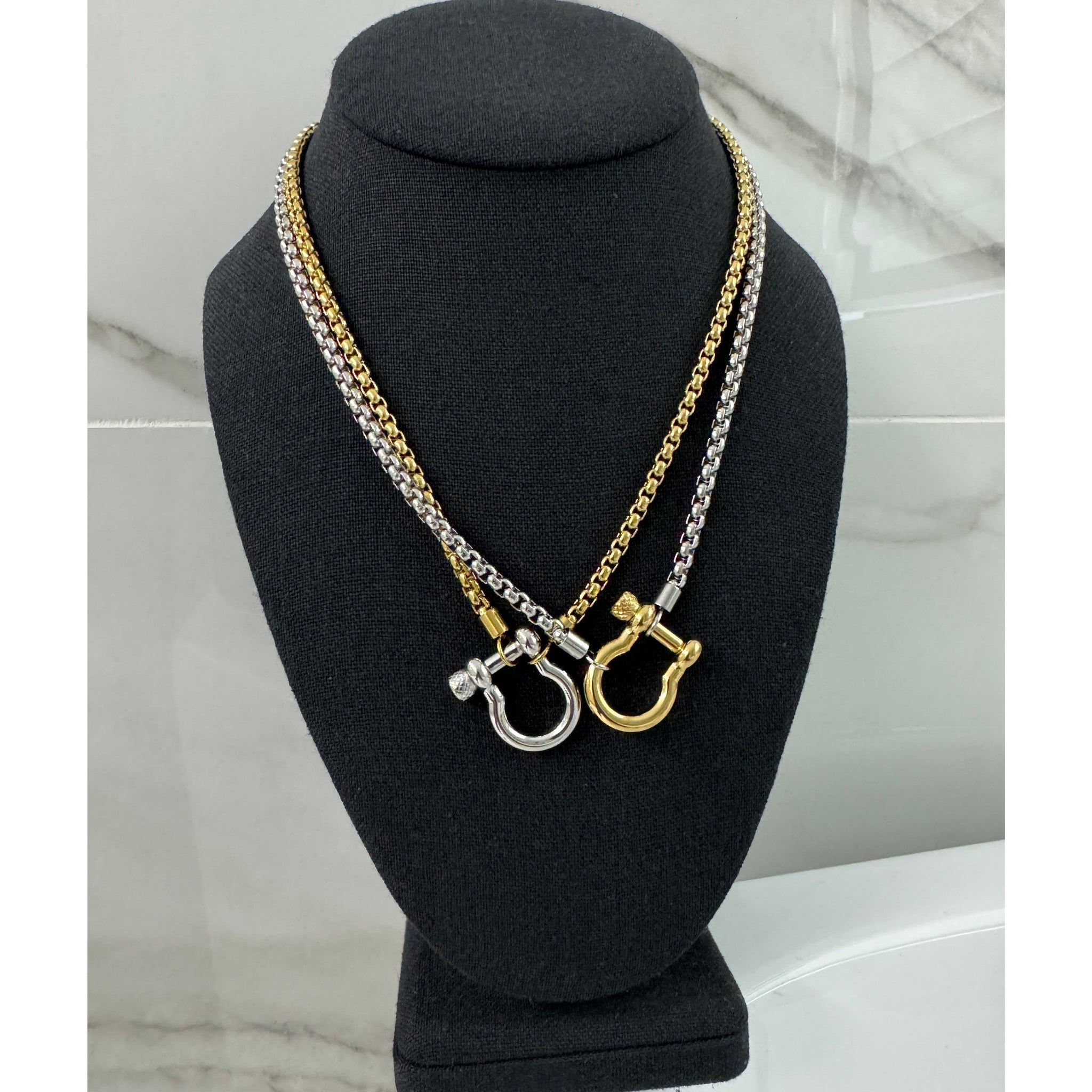 Horseshoe Herringbone and Lightning Bolt Pendant Necklace Set