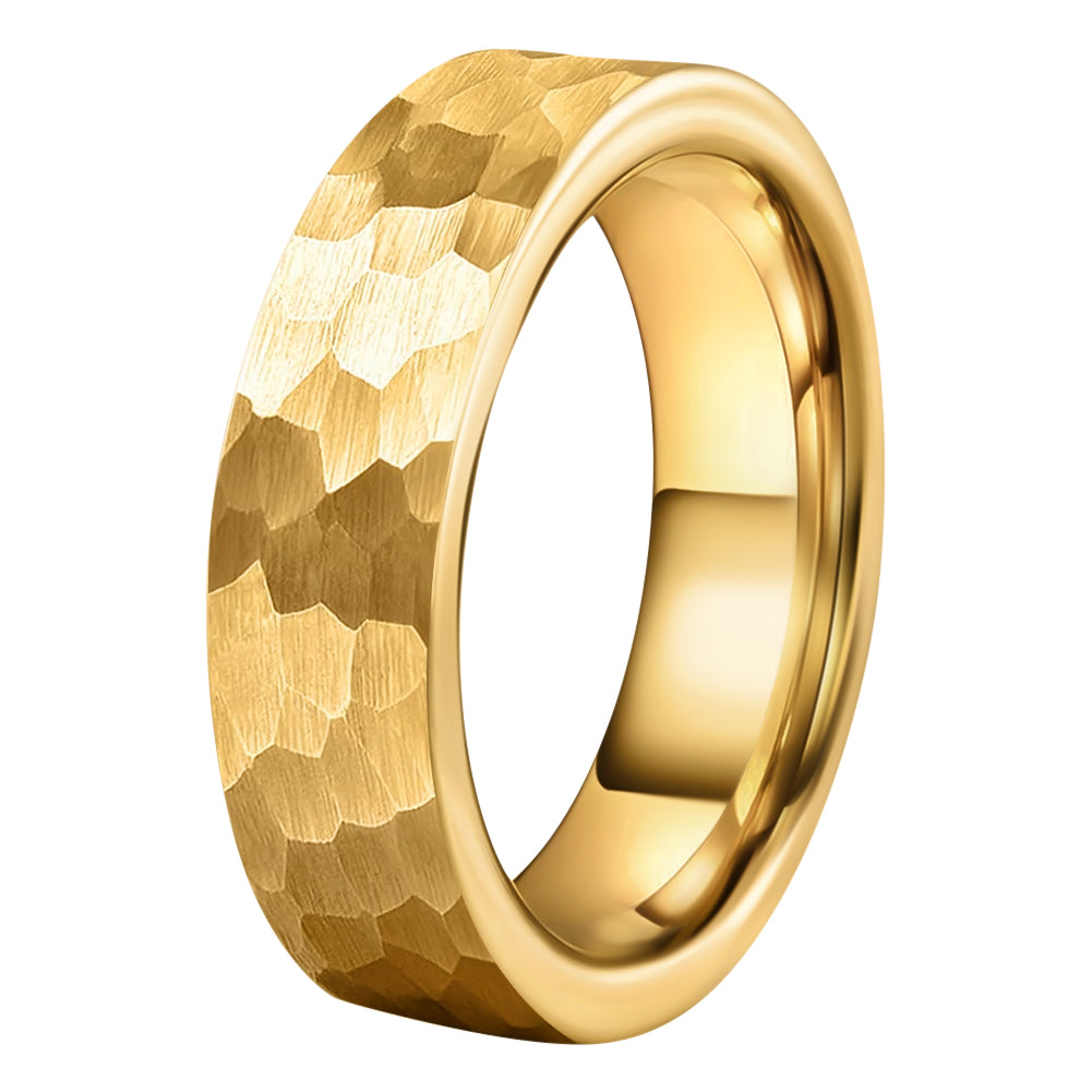 Our His & Hers Gold Hammered Wedding Band is designed for the modern man or woman who values bold simplicity with a touch of texture. These 2 set of bands features a distinctive hammered finish that gives it a rugged yet refined look—each subtle dent catching the light in its own unique way.