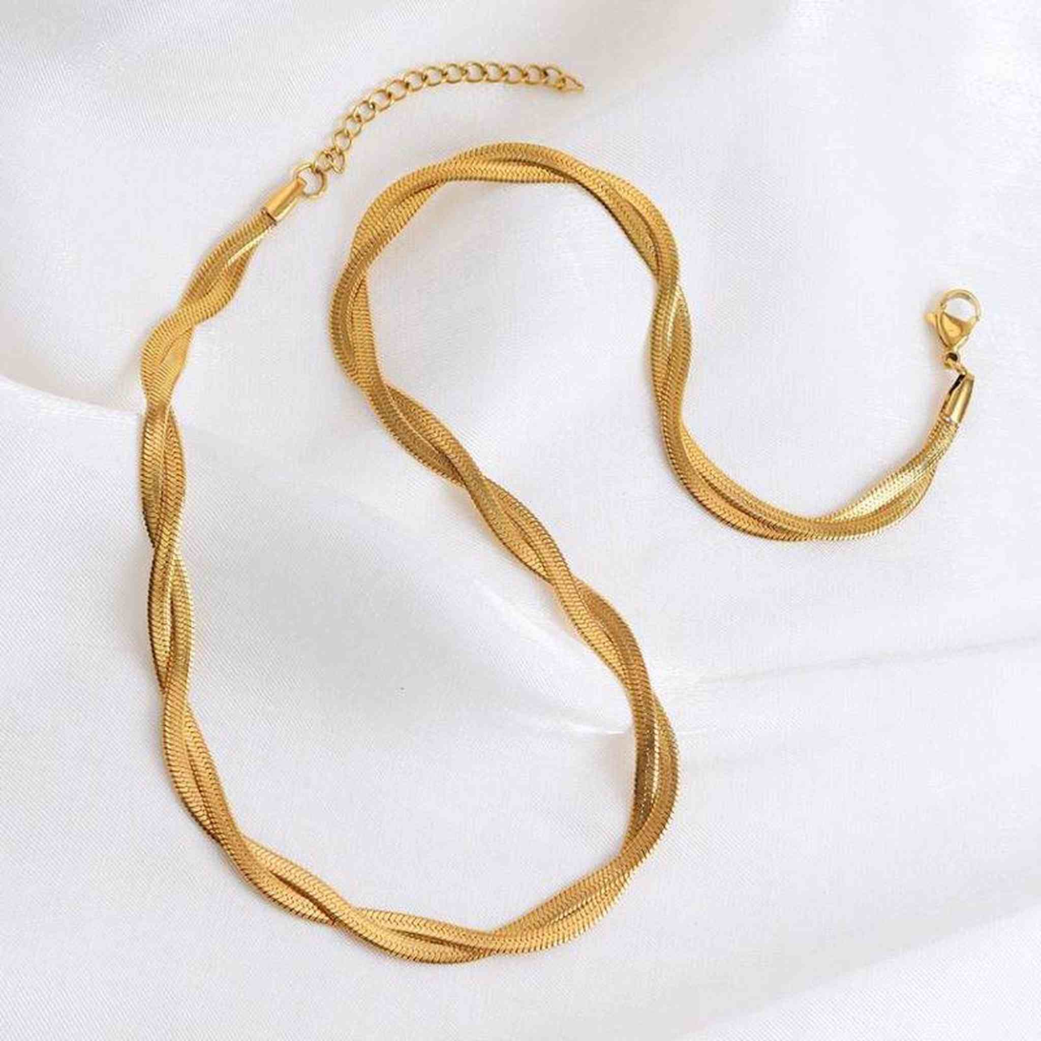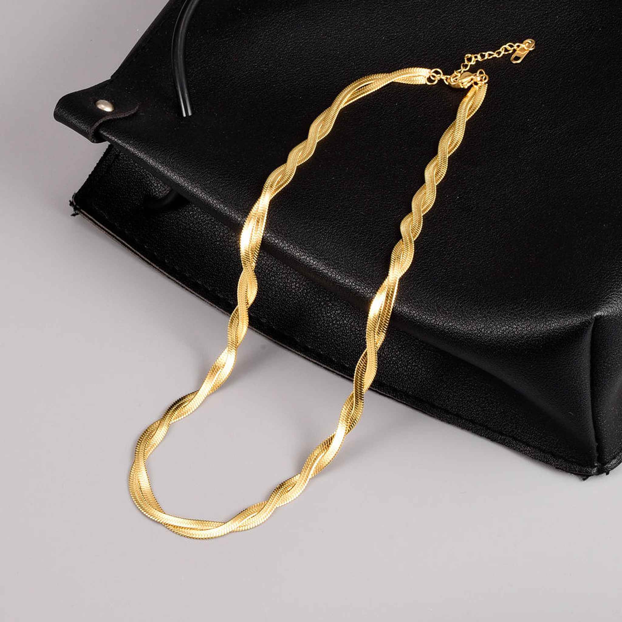 Expertly crafted and timeless, our Twisted Herringbone Necklace in gold is the perfect addition to any jewelry collection. The intricate twisted design showcases the brilliant shine of the gold, making this necklace an elegant and versatile choice for any occasion. Made with quality materials, this necklace will be a long-lasting and stylish piece for years to come.