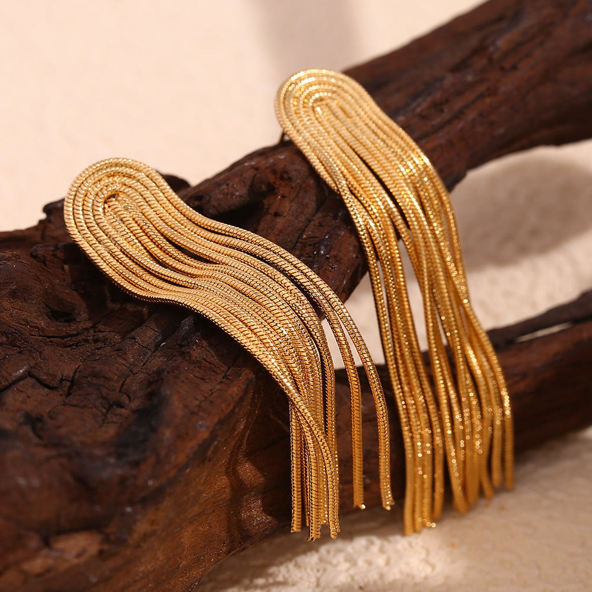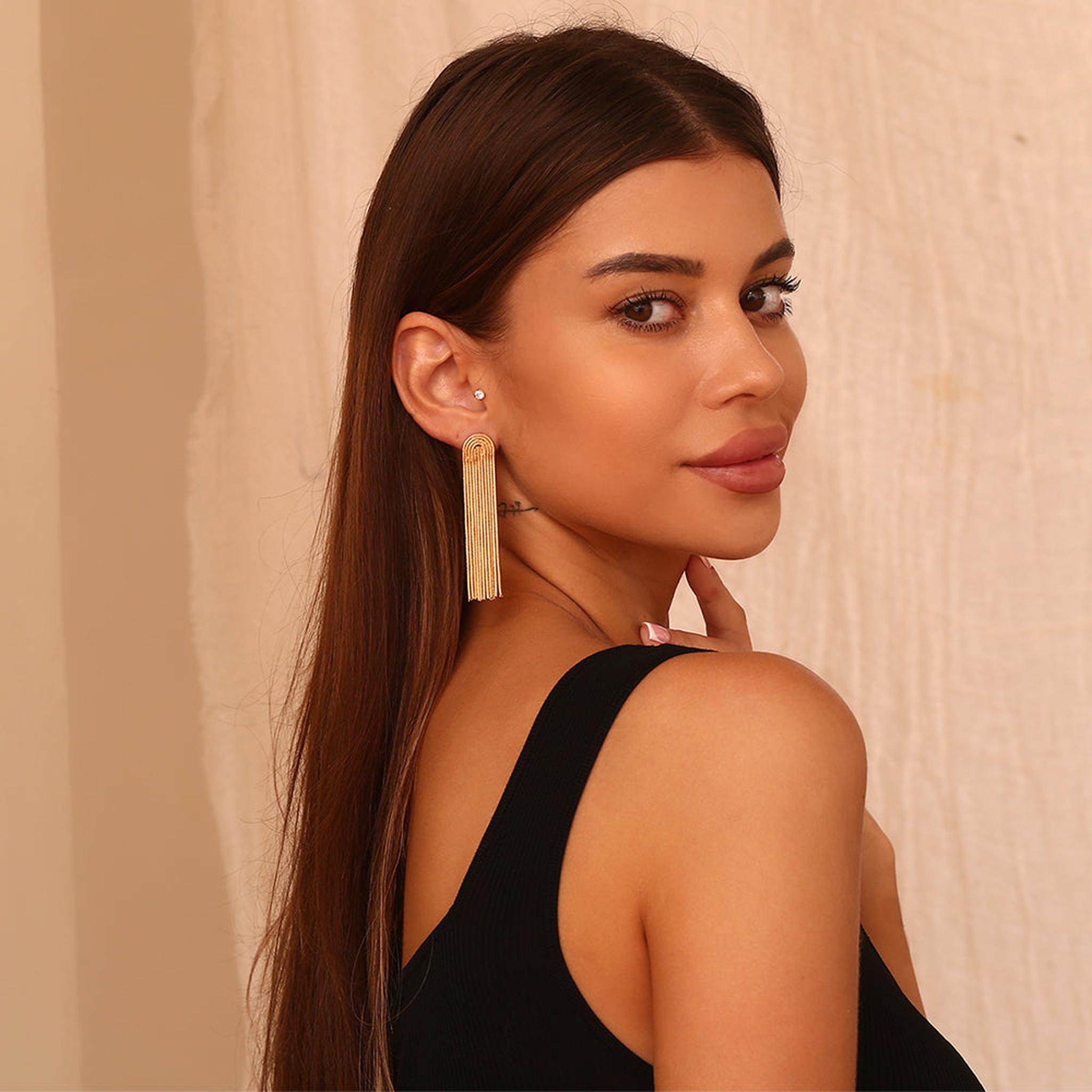 Elevate your look with our luxurious Gold Tassel Earrings. These statement pieces feature beautiful gold tassels, adding elegance and glamour to any outfit. Perfect for a night out or a special occasion, these earrings are sure to make you feel confident and stylish.