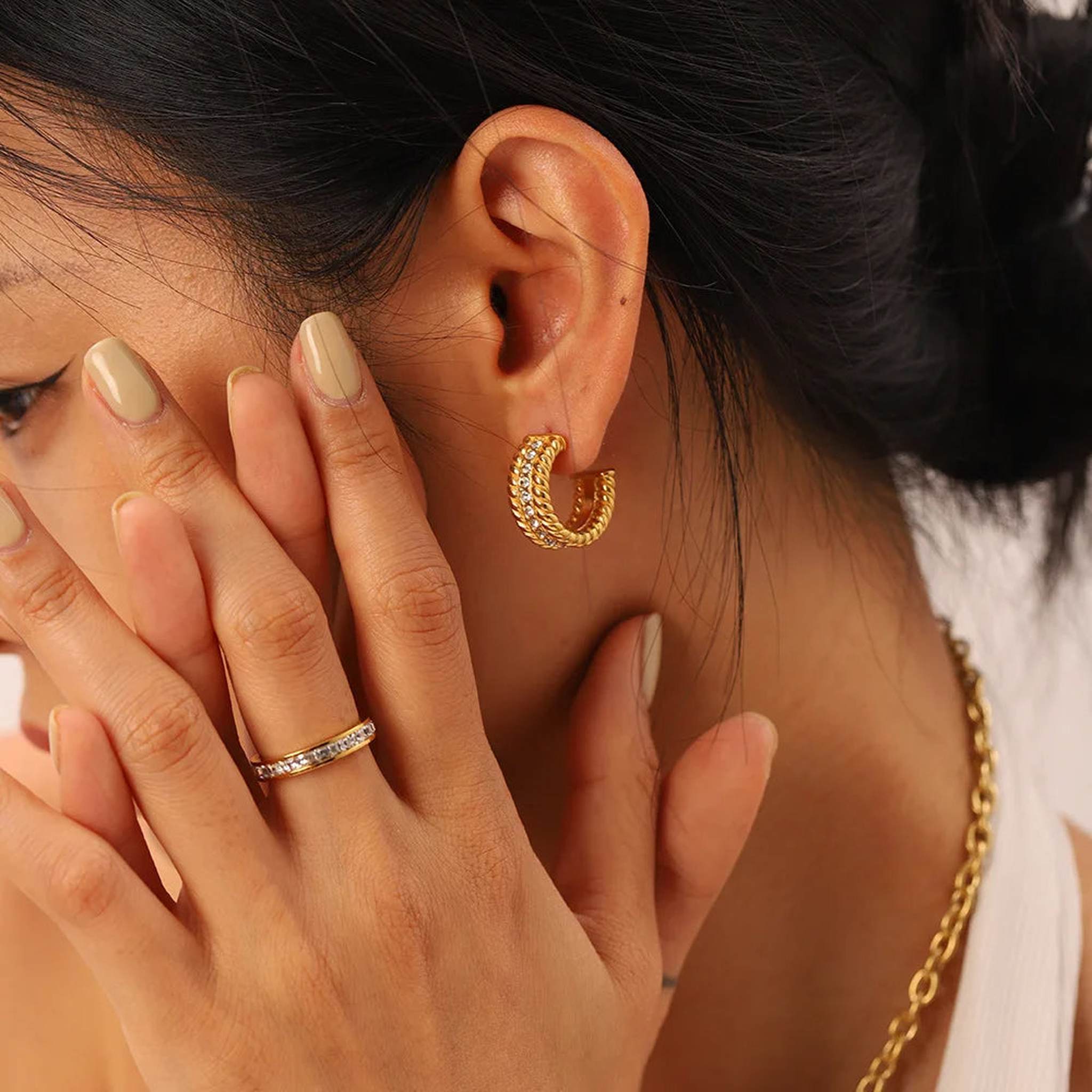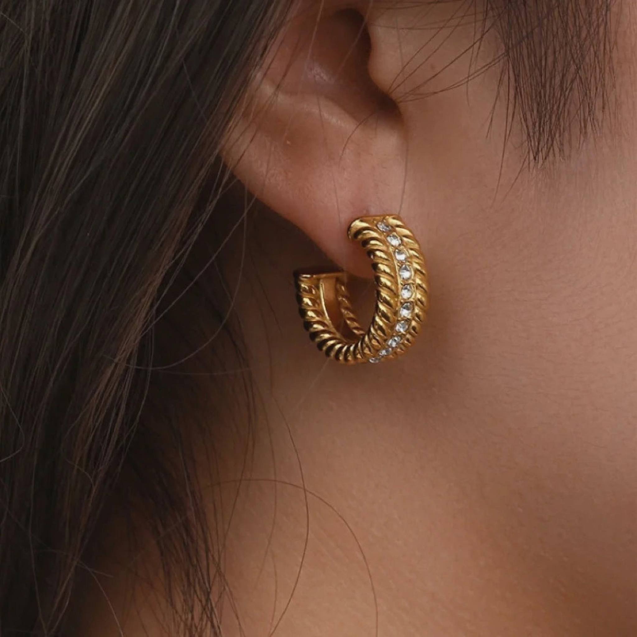 Elevate your jewelry collection with our Pave Hoop Earrings. These sophisticated earrings feature intricate pave detailing that will catch the light and add a touch of luxury to any outfit. Perfect for formal occasions or adding a touch of elegance to your everyday look.