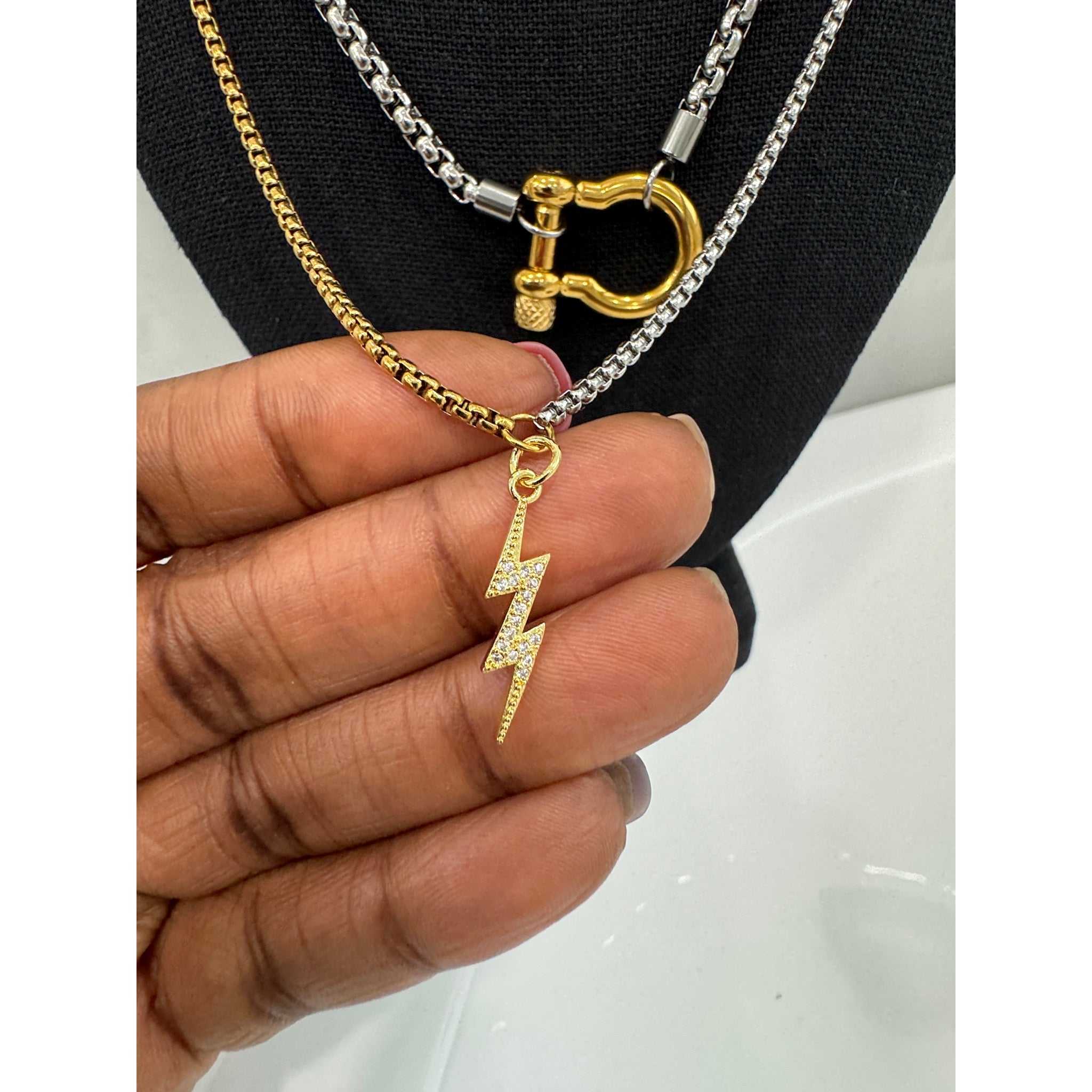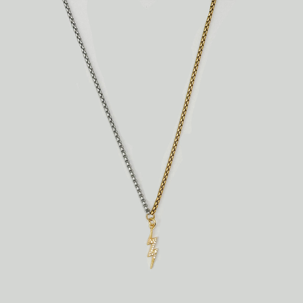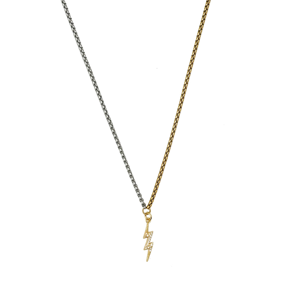 Mixed Metal Lightning Bolt Pendant Necklace