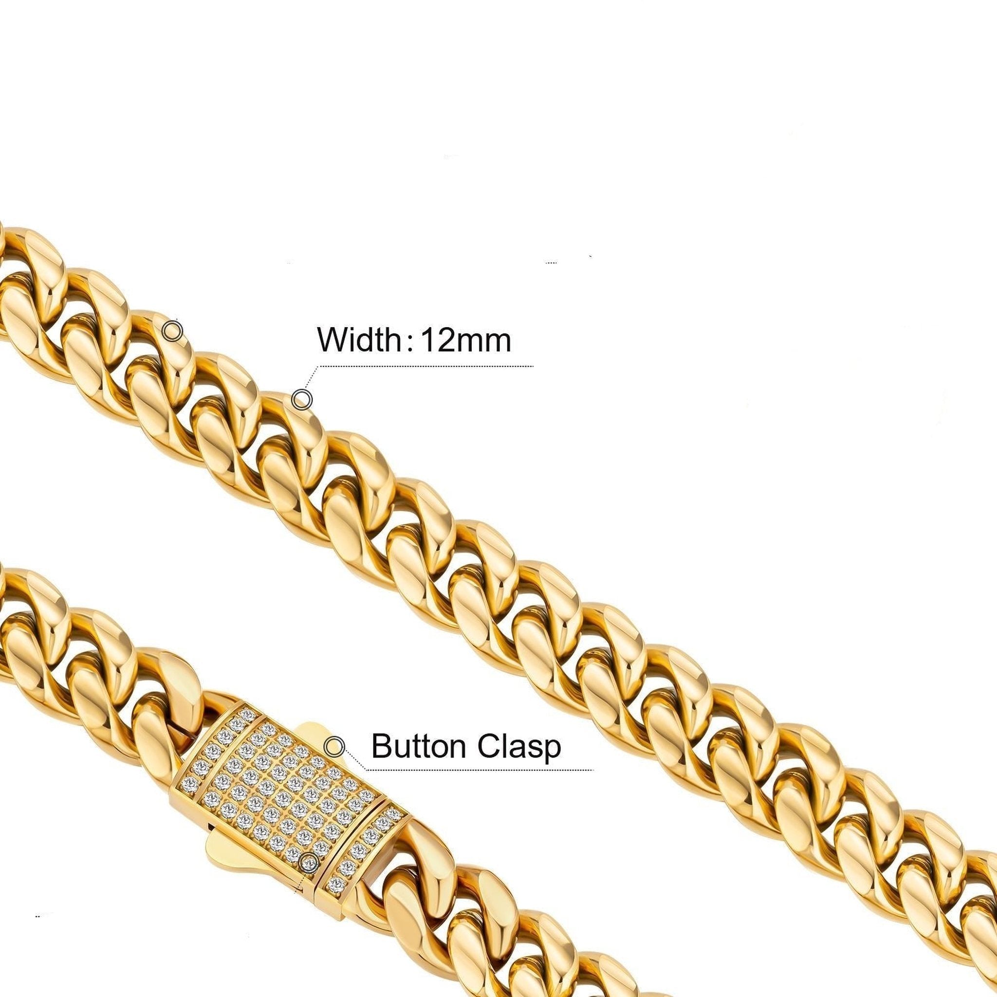 12mm Cuban Chain – Gold Miami Link with Diamonds