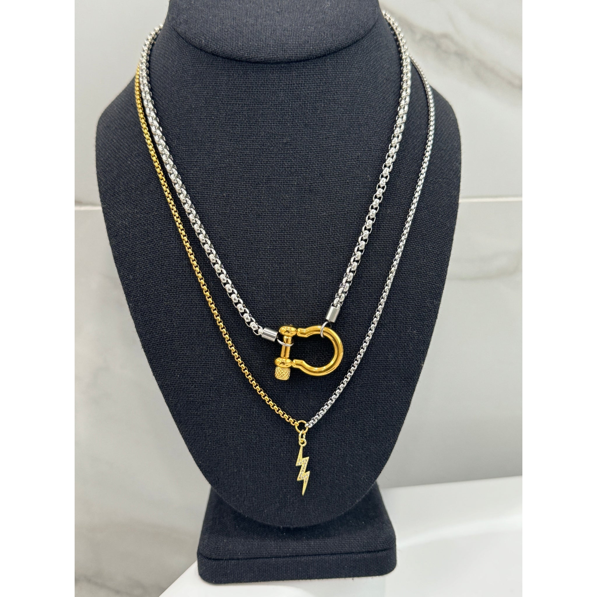 Silver Horseshoe Layered with Lightening Bolt Necklaces Set