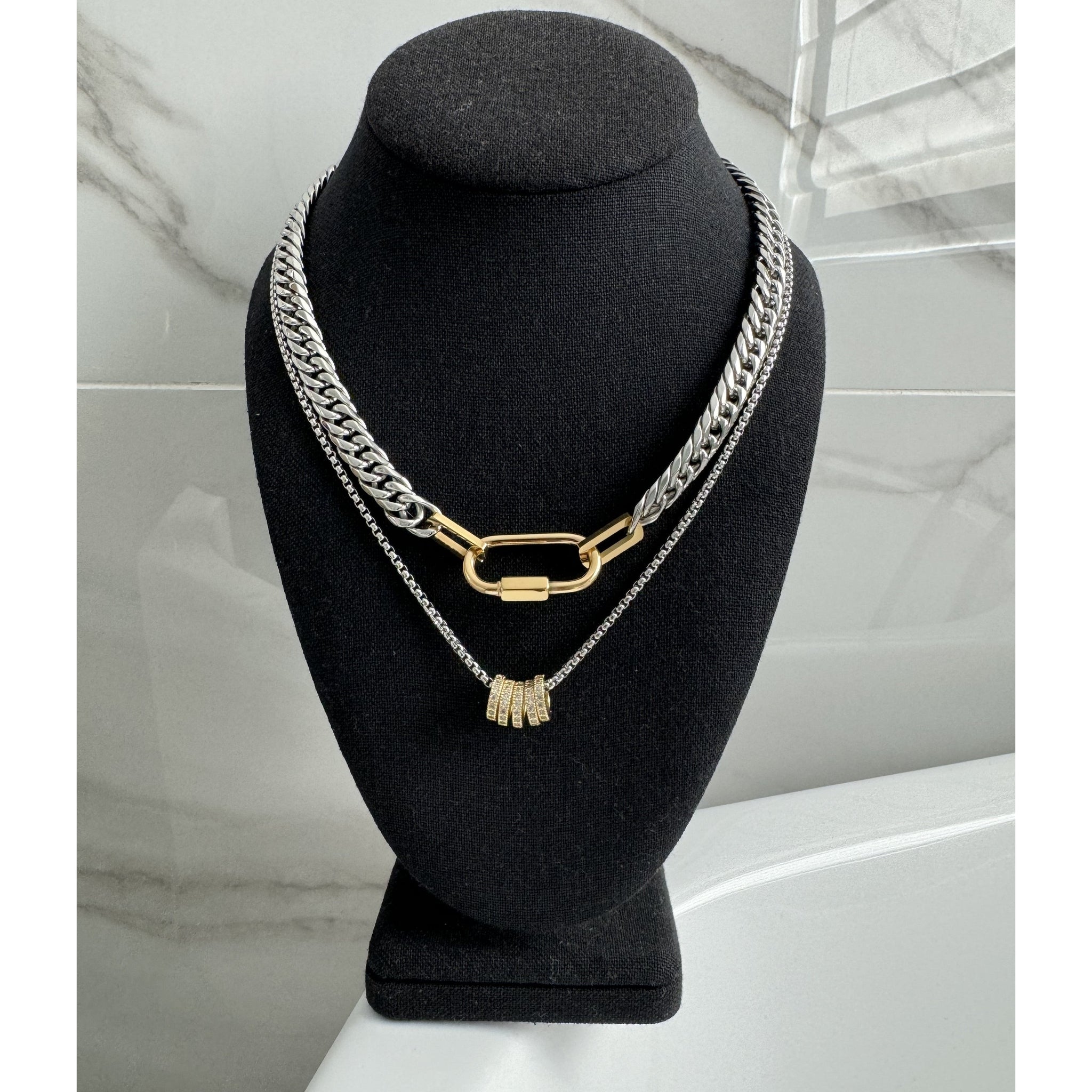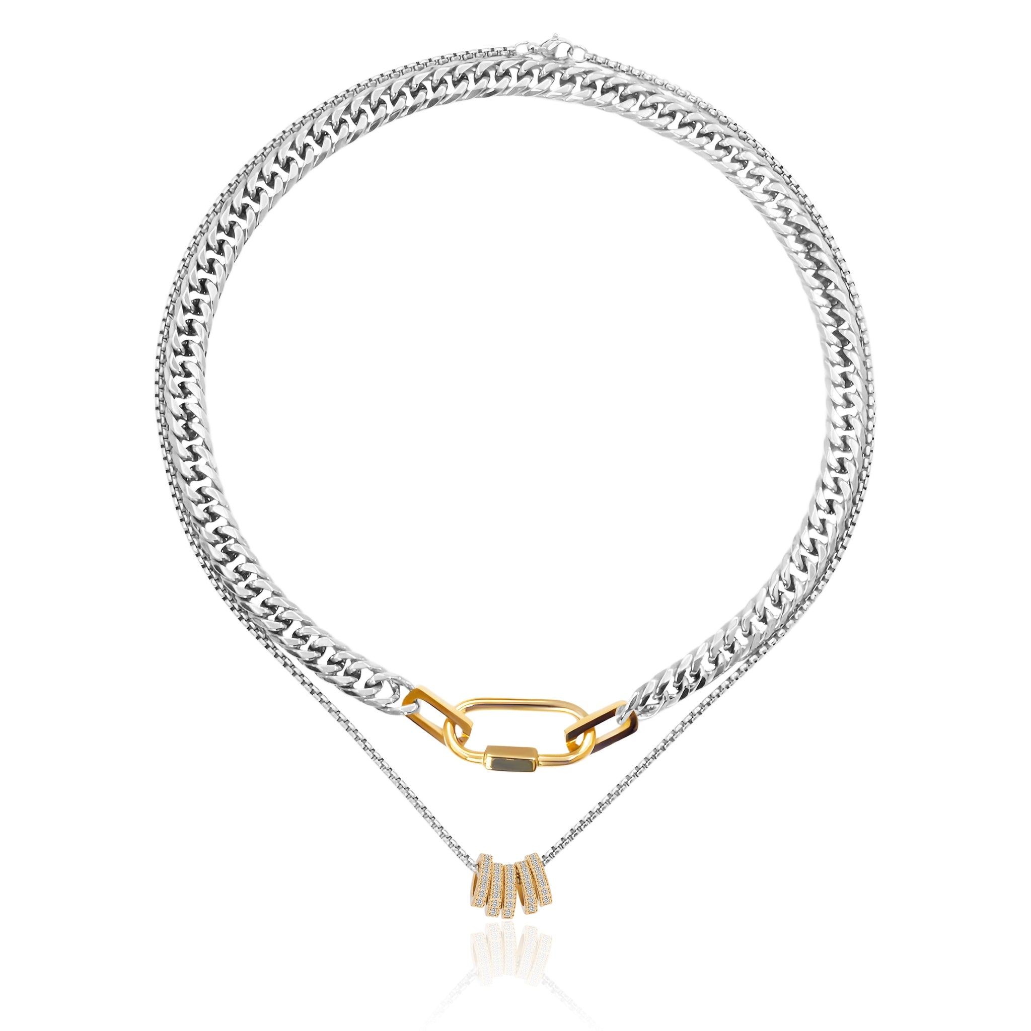 Silver Chain with Gold Carabiner Necklace