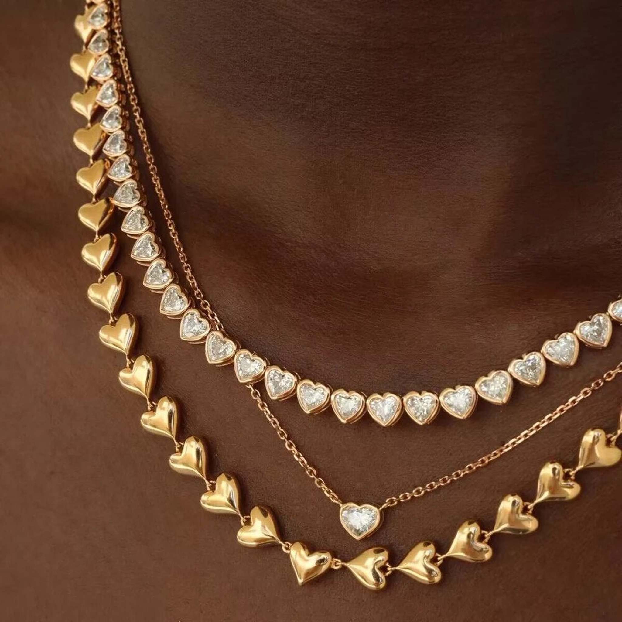 Gold Horseshoe Herringbone and Pave Pendant Necklace Stack