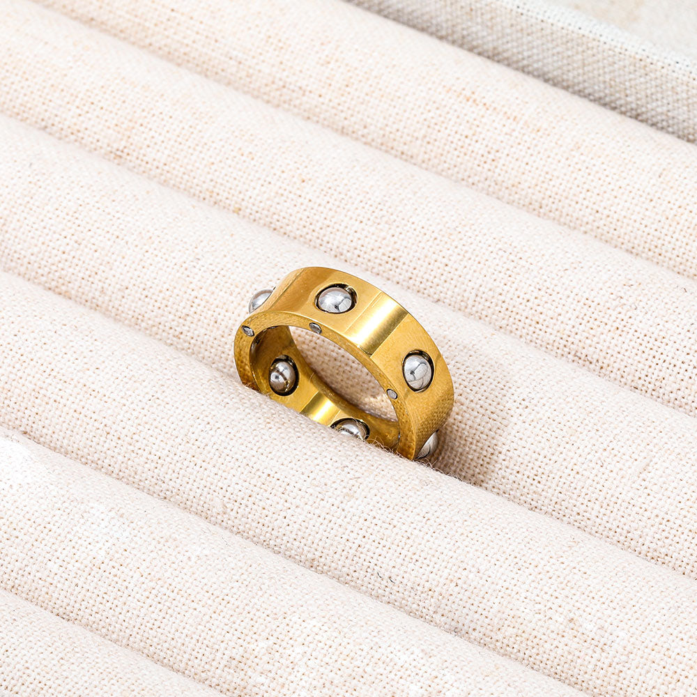 Our Gold Ring with Mini Balls is a piece that brings texture and charm to your everyday stack. Featuring a gold band adorned with polished mini white gold filled ball accents, this ring is the perfect balance of subtle detail and timeless elegance.