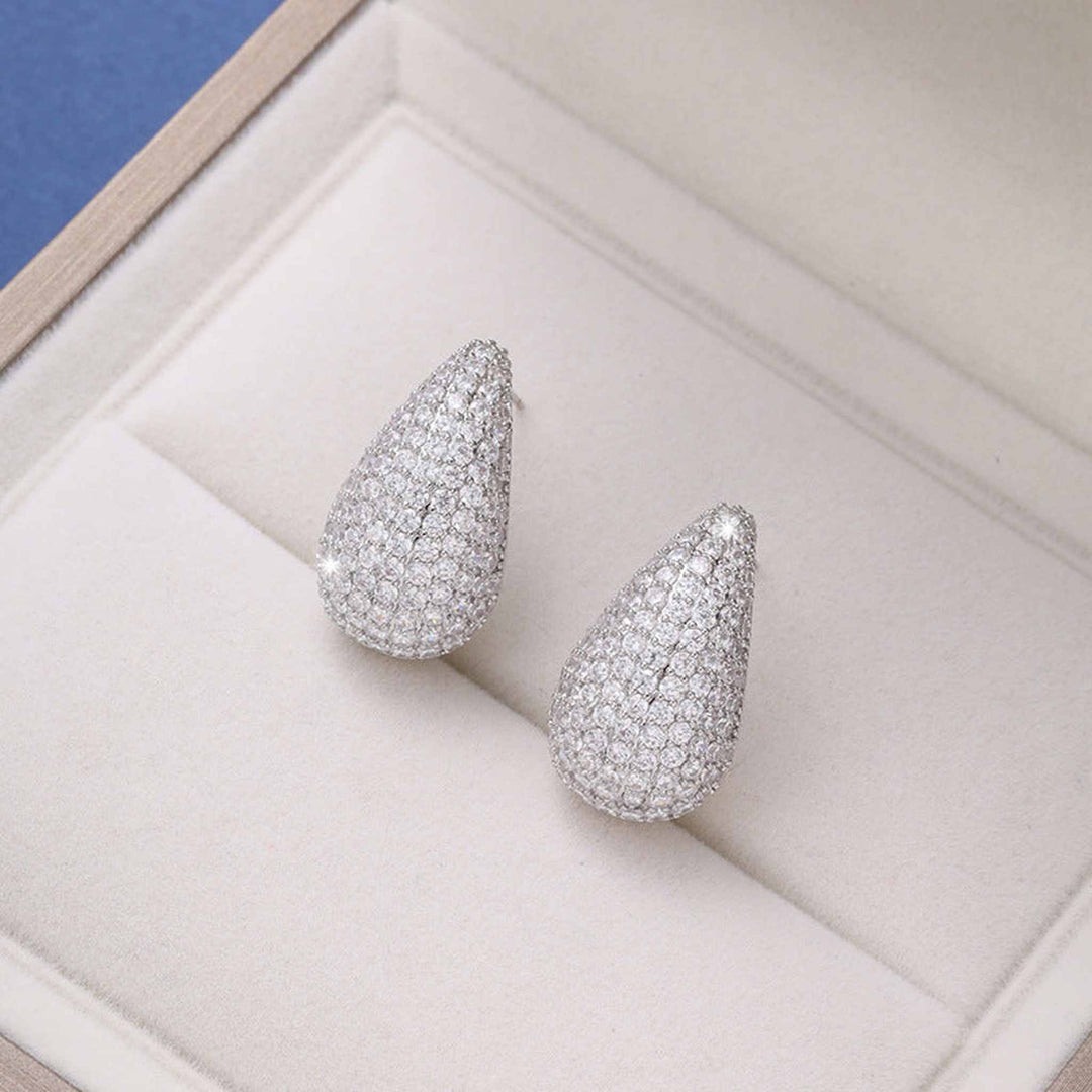 Enhance your outfit with these stunning Pave Teardrop Earrings. These earrings have a sleek design and sparkling pave details and add a touch of elegance to any look. Perfect for a night out or special occasion, these earrings are a must-have for every jewelry collection.